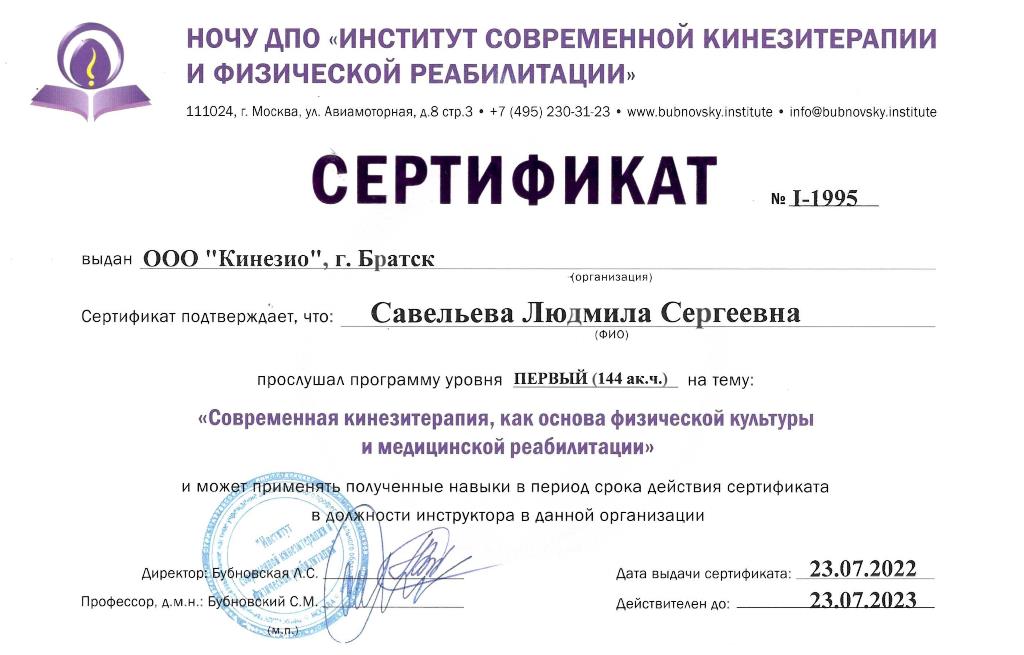 Средне-профессиональное образование, специальность - учитель физической культуры, 2015 г. Стаж работы в Центре доктора Бубновского (по методике Бубновского)