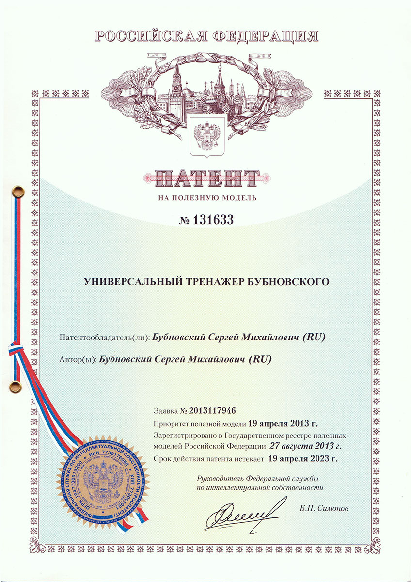 Патент на полезную модель. Универсальный тренажер Бубновсокго